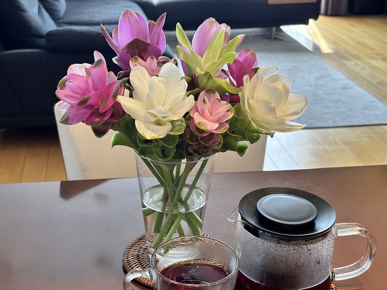 初めてクルクマを知りました、とっても素敵でした!お花のようにみえるけど、肉厚で丈夫。思っていた以上に日持ちし、長く楽しませていただきました。絶対また購入します!