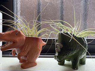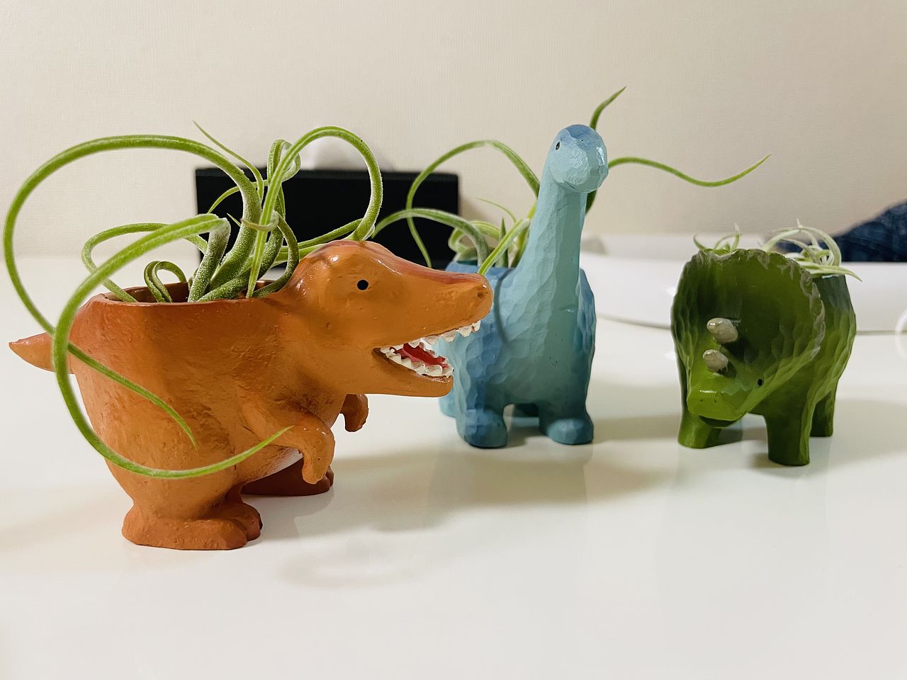 トリケラトプスに、ティラノサウルスも仲間入りしました。ふさふさのエアプランツ、大事に育てたいと思います