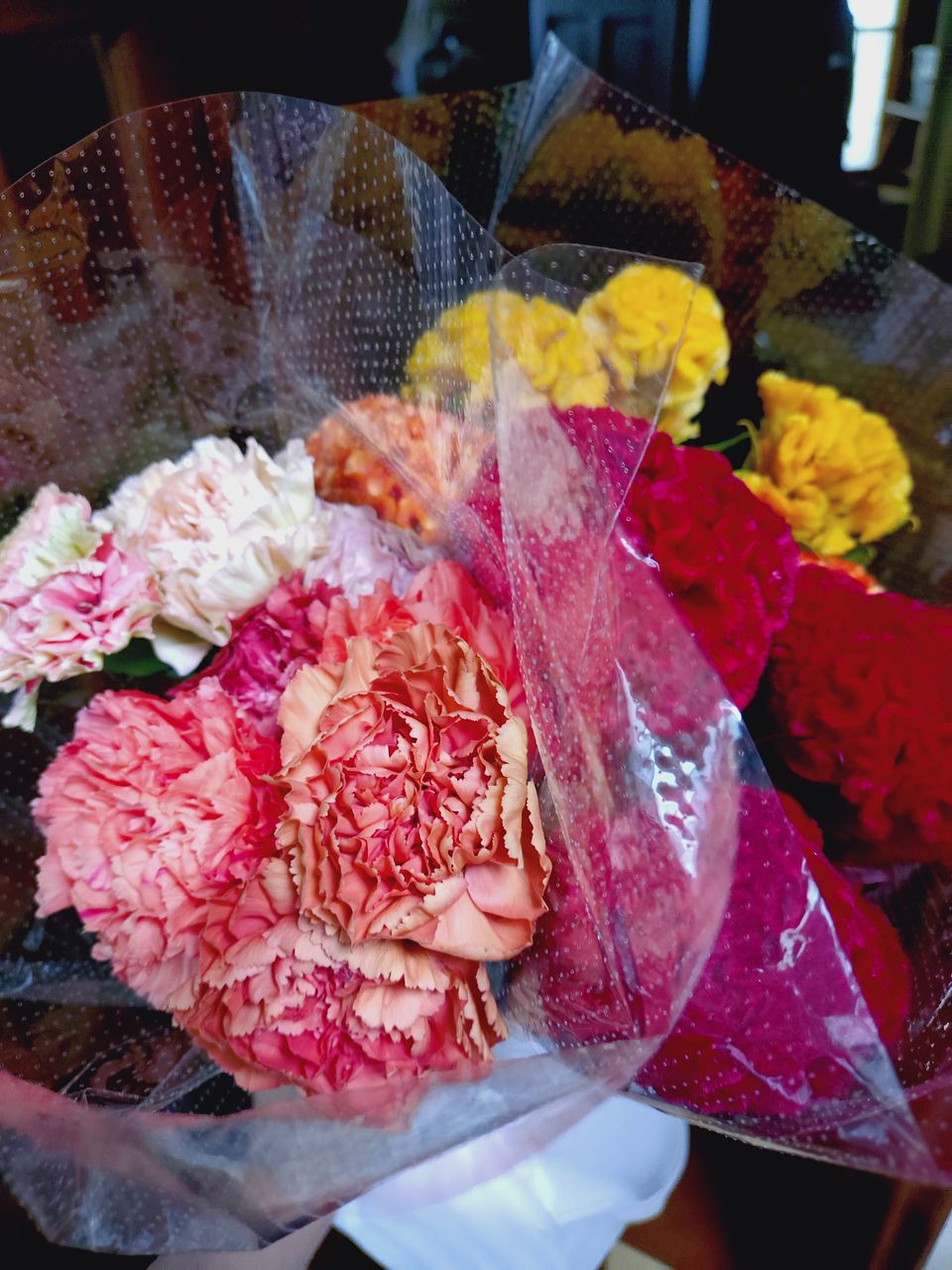 今回は秋に大人気の花材「ケイトウ」とこっくり秋カラーの「カーネーション」を2束セットでお届けします🧶🍁🐿️