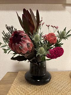 - ⚠️プロテアやネイティブフラワーは輸入商品のため、色の出方や咲き方が写真と少々異なることがございます。葉はほとんど付いていなかったり、変色している場合も。ご了承ください。