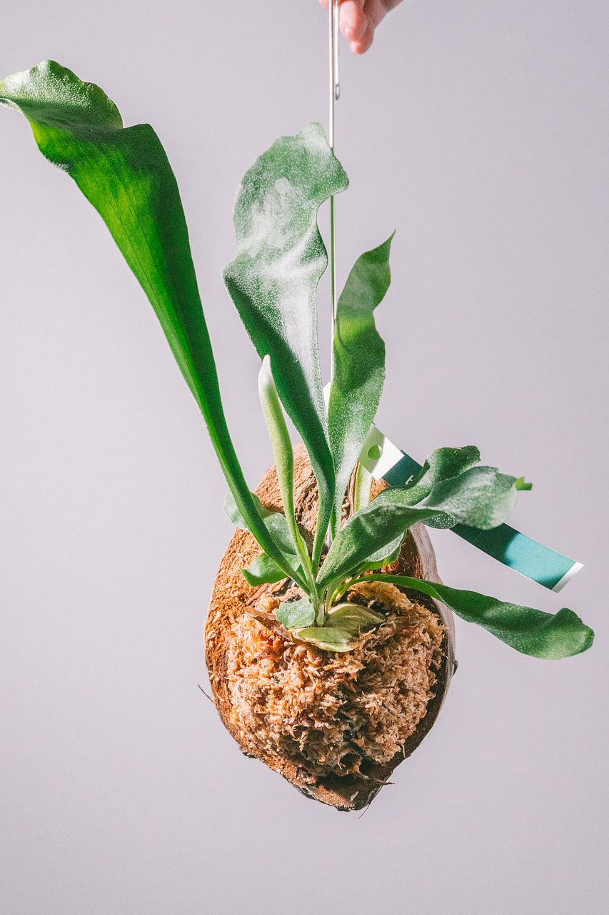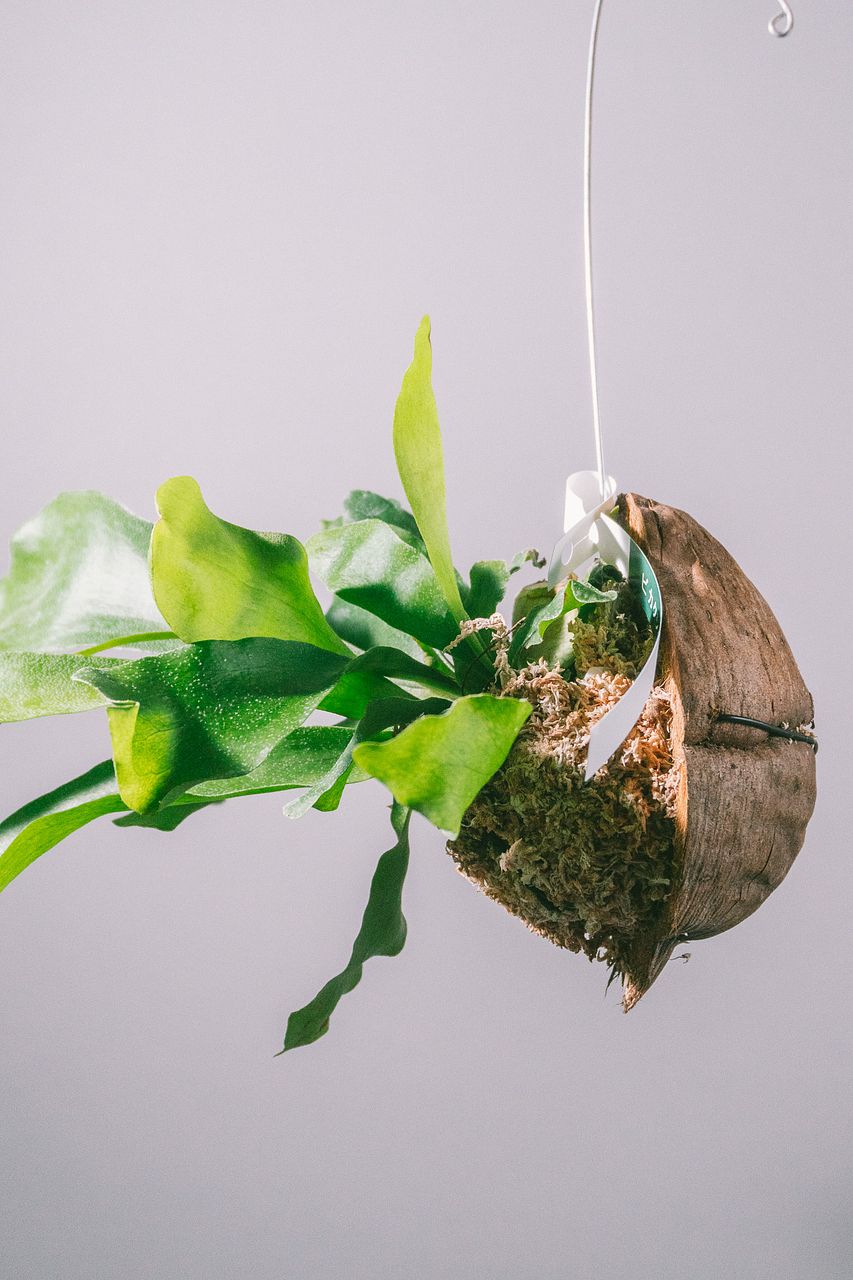 珍しい! ココヤシの実に入ったビガクシダ(コウモリラン)「ビフルカツム」🌴🥥