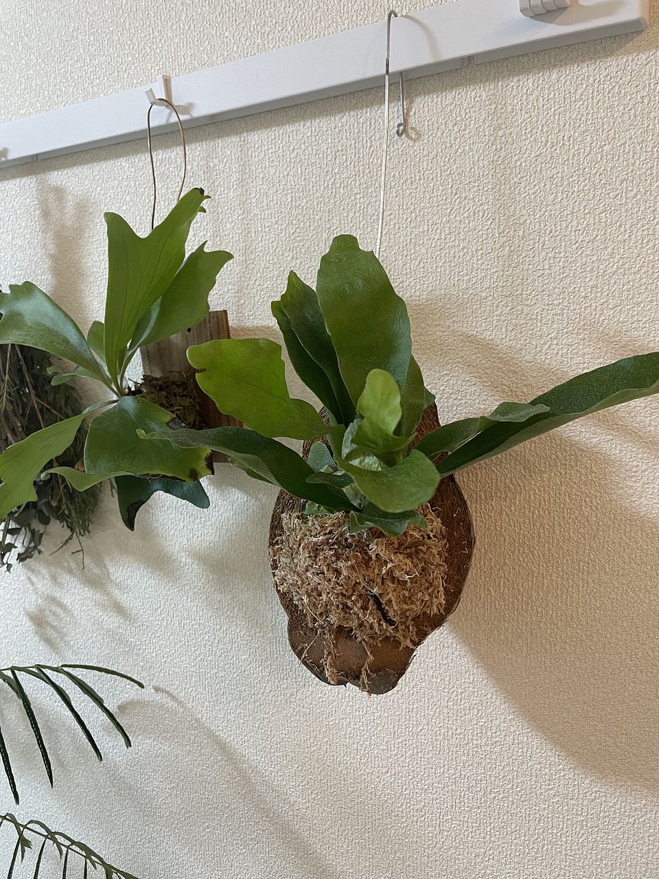 青々とした元気で綺麗なビカクシダが届きました! ずっと欲しかったビカクシダ、可愛いヤシの実に着いたものでさらに嬉しいです✨