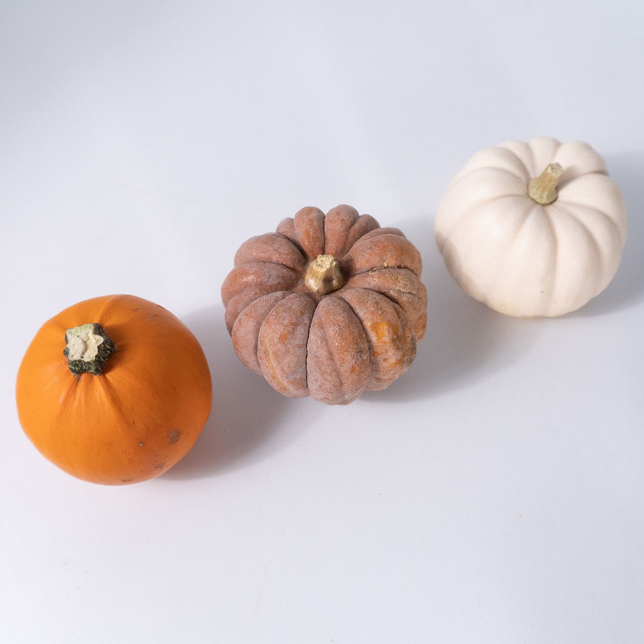 今回はスモーキーなキャラメルカラーがおしゃれな「ジョンソン」、ミルキーな白いかぼちゃ「ホワイトブー」、ころんとまるいオレンジ色のかぼちゃ「スモールオレンジ」をセレクト🪄 限定数のみの販売のため、お見逃しなく🏃♀️