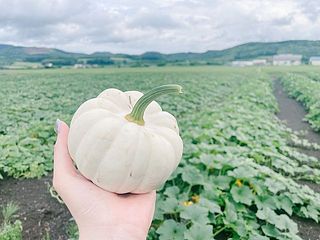 フローリストが去年に北海道の和寒町へ訪れた時のかぼちゃの圃場の様子もサブ写真に載せています。ハロウィンの季節に出回るかぼちゃはこのようなところで栽培されています🌿