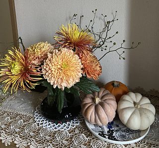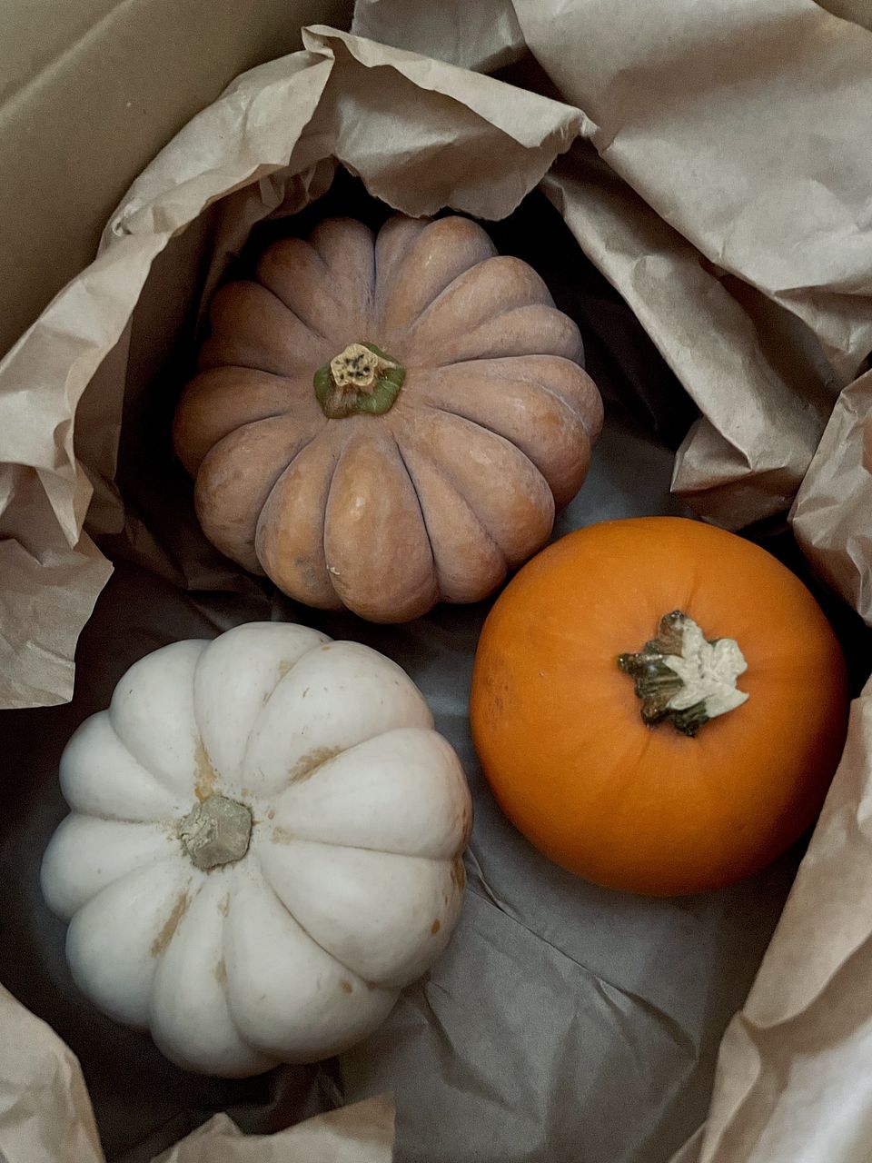 色の組み合わせが秋らしく、とても可愛いです。小ぶりながら、形も綺麗で立派なものが届きました。特に茶色系のカボチャは珍しく、くすみカラーが気に入っています。