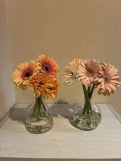 元気が無くなってきた花を生け直すのに小さな花瓶を探してました。お値段も手頃だし送料無料だったので注文しました。届いて10日過ぎたガーベラを飾ってみました。