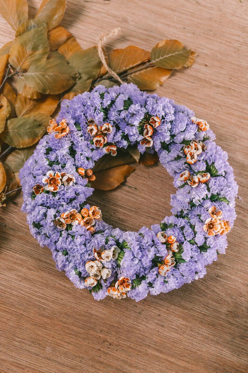 ハロウィンにぴったりなパープルのスターチスをたっぷり使ったリースキット🦇🧙♀️