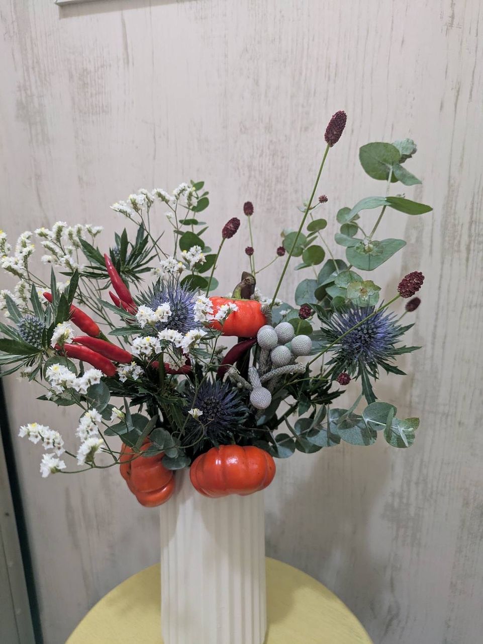 ナチュラルな雰囲気たっぷりのハロウィンブーケはいかが?パンプキンツリーはなんとナスの仲間。
