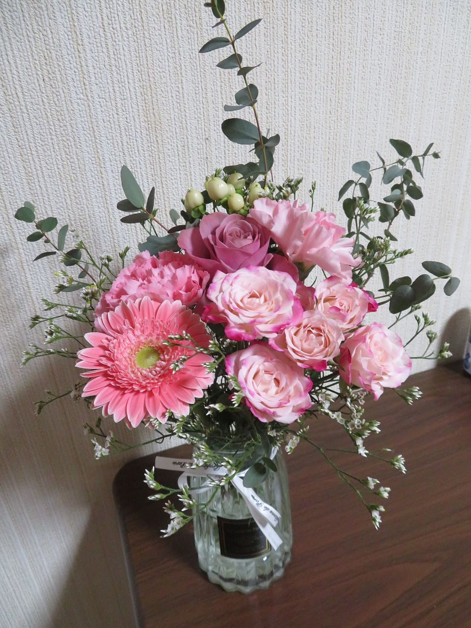 とても素敵なピンク色の花束が届きました! 一瞬小ぶりな花束だと思いましたが、一緒に頼んだ花瓶にピッタリ。 お部屋に花があるだけで幸せな気分になります٩(^‿^)۶