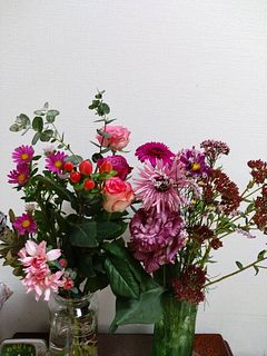 ボリュームのある素敵な花々でしたが、バラ4本が3日ほどで萎れてしまったことが残念でした。
