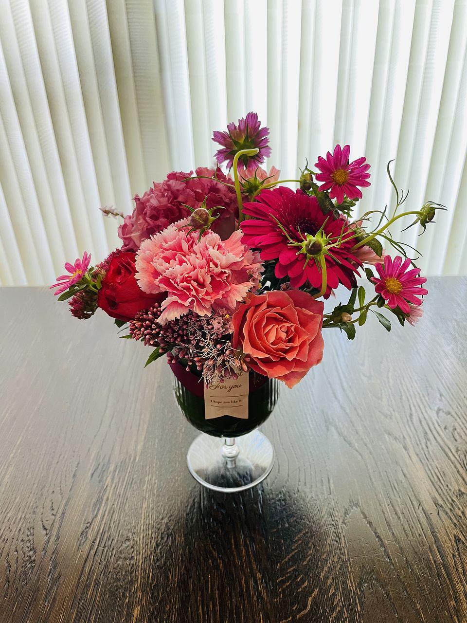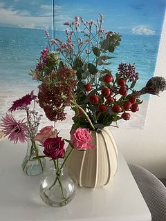 花器も一緒に購入しました。サイズ感がちょうど良かったので、早速新しい花器に2つ合わせてたっぷり入れたら、とても可愛かったです🩷お値段以上のお買い物に大満足でした!