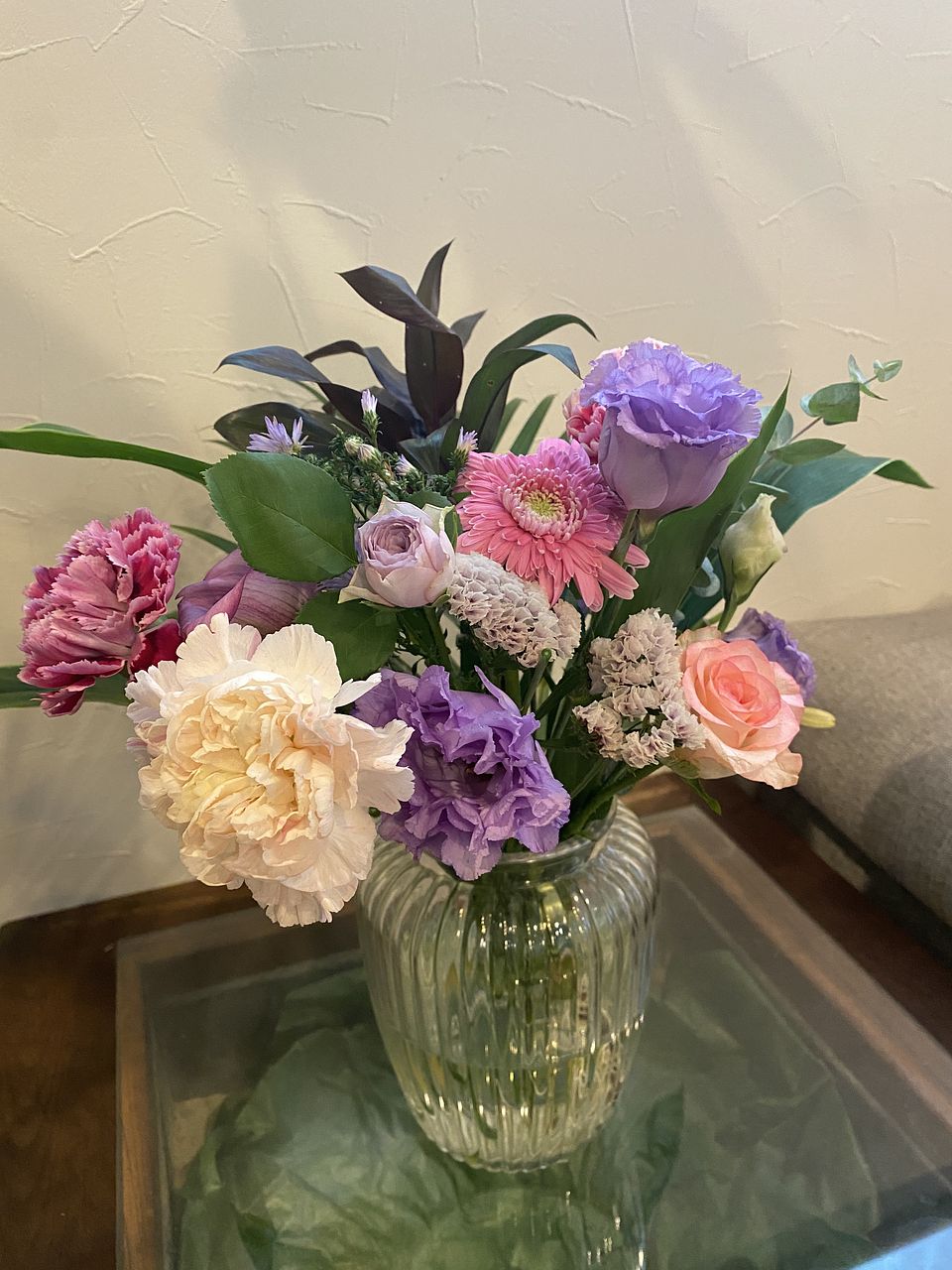 ピンクとラベンダー色のシックな中にかわいさ光るブーケはいかが?🫖🍰✨