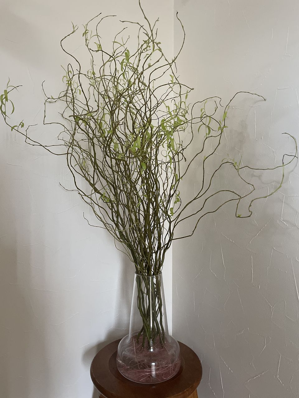 先週受け取り、すぐに花瓶にいけました! 暑すぎずの時期も良いのか、新芽がたくさんつき始めています⭐︎ 初めての雲龍柳はフラワーイズさんで良かった✨