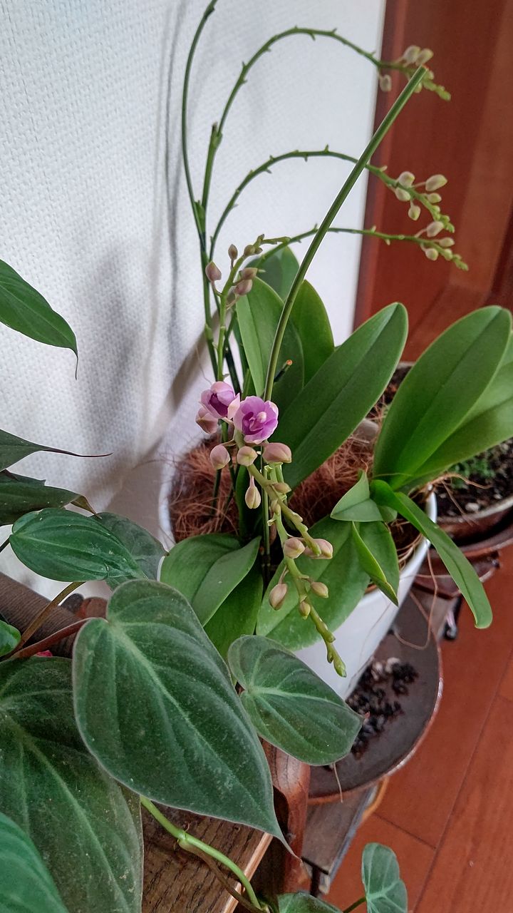 控えめながら印象的な佇まいや、トーンを抑えたグラデーションの花びらと、ミントグリーンの葉のコントラストが爽やかで印象的。咲き姿は繊細ながら、株は丈夫で育てやすく、初心者さんでも安心して育てられる胡蝶蘭です✨