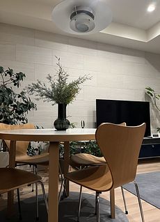 ティーツリーの強力な浄化力も相まって、部屋がとってもクリーンな雰囲気になりました! ひと枝はサイドテーブルに、残りはダイニングにバサっと飾りました。いい感じ!