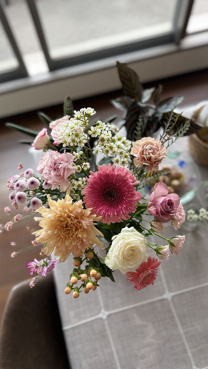 素敵なお花が届きました🌸 地元のお花屋さんだと種類豊富なお花がない時もありますが、こちらでは素敵なお花をセレクトしてくれているので、花瓶に刺しただけで素敵になります また別のお花も注文してみたくなりました