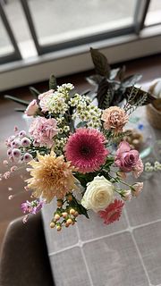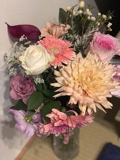 思っていた以上のお花が届きました 届いた時はあれ?なんか小さい!と思いましたが 開けたら ボリュームたっぷり 花瓶に入れてもパンパン 小さくなってしまったお花やグリーンは玄関に飾らせてもらってます ありがとうございました。また注文させてもらいます。