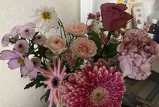 花材の種類も豊富で、色のバランスのセンスも素敵でした。 2束でボリュームたっぷりだったので、色をミックスして2つに分け、一方は母にあげました。とても喜んでくれました。