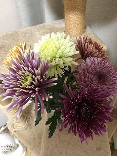 とっても素敵なマムです!お正月花用に販売されているので見た豪華な品種ばかりです。本当に想像以上です。ライムのマムは最近見かけ出した、花弁の先が少し割れてひらひらしているもので、希少品種であることがとても嬉しいです。お花が出回らない時期に素敵なマムを届けていただきありがとうございます。なのに送料込みでリーズナブル。flowerさまのスゴさが伝わりました。