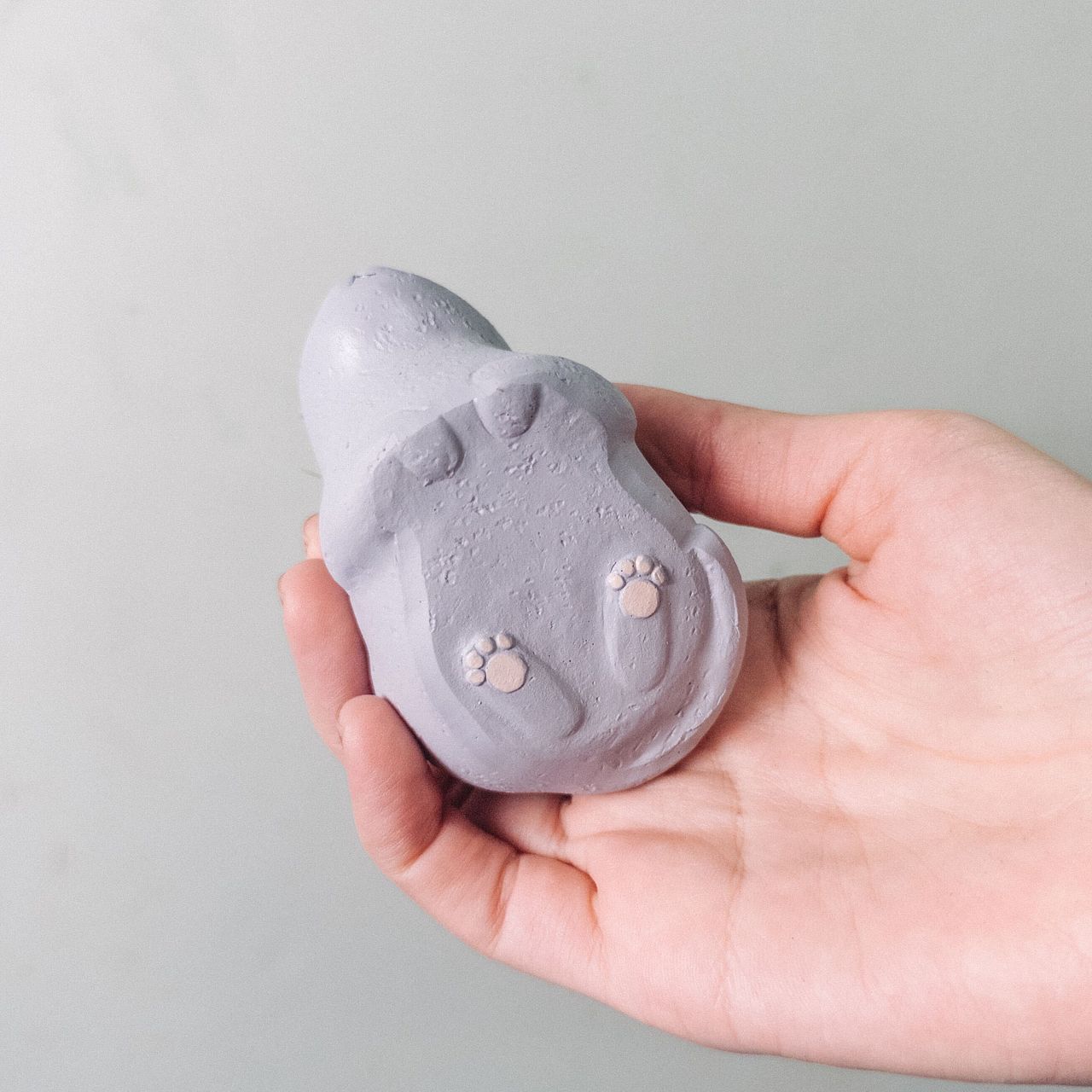 かわいいロシアンブルーの背中にポットにミニサイズのエアプランツを乗せて🐈