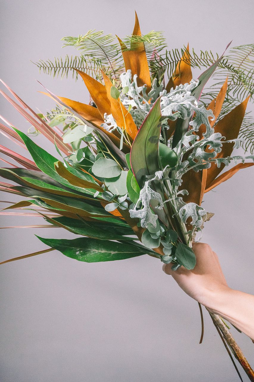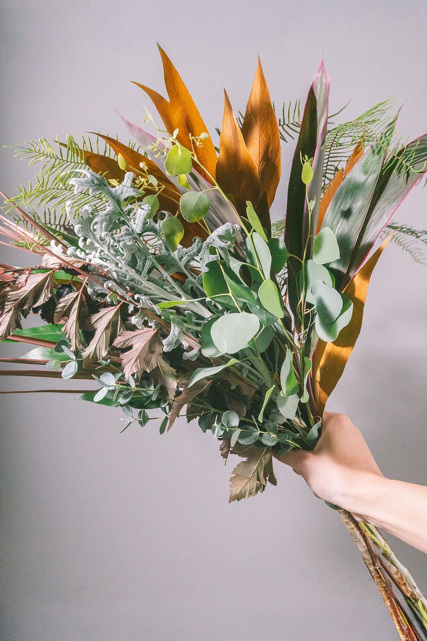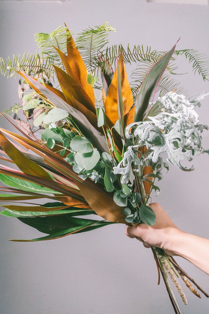 ボタニカルな雰囲気のグリーンをセレクトした、ナチュラルなリーフブーケ💐☘️