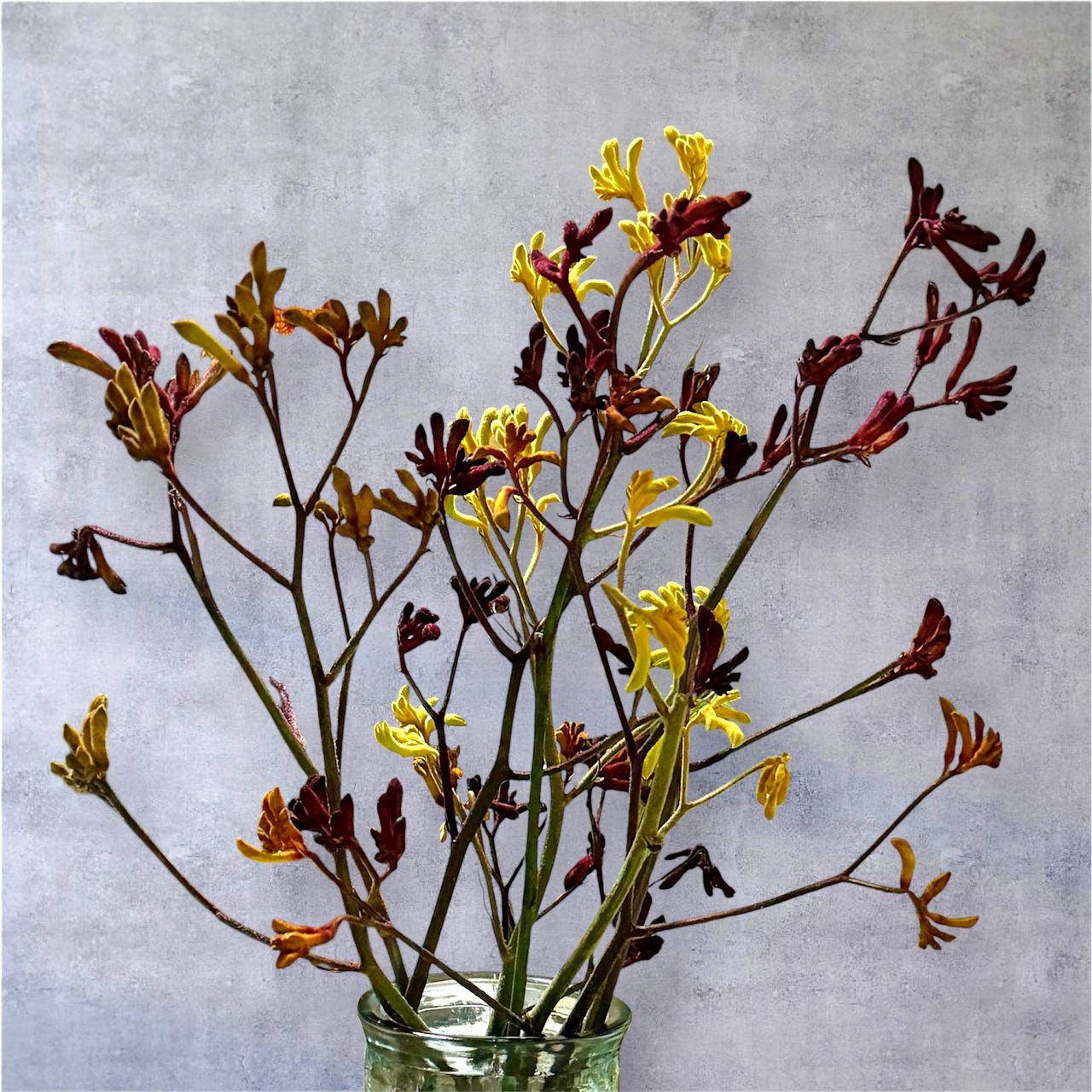 オーストラリア原産の人気フラワー、カンガルーポーを色とりどりにミックスした個性派ブーケ。