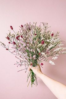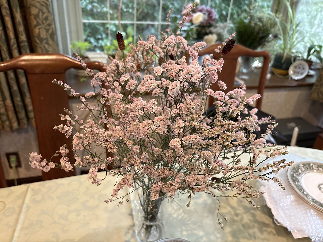 もこもこふわふわニュアンスカラーのハイブリットスターチスとワレモコウをたっぷり束ねたブーケ🩰🤎