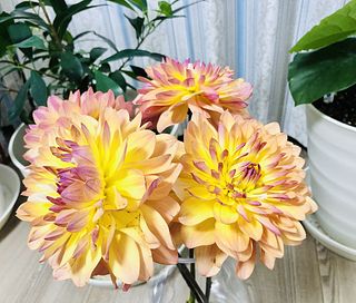 とっても素敵なダリア💓 存在感、抜群の大ぶりダリアです😍 葉も落としてあり、水あげしてそのまま飾っています☺️ 初孫が来てくれる日に合わせて購入❤️ 黄色のダリアの花言葉は『優美』成長が楽しみです♪