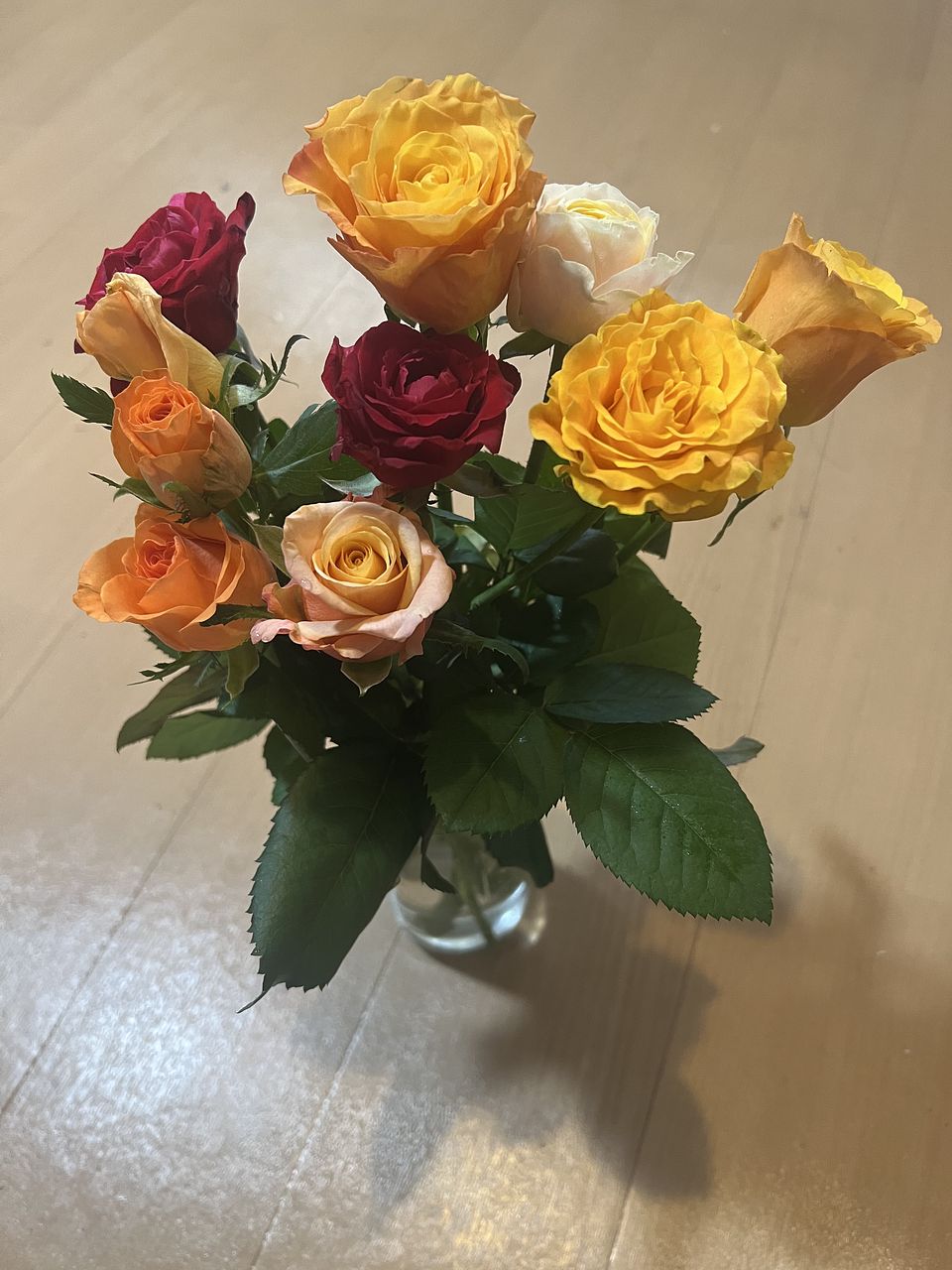 夕焼け色のバラで綺麗でした!特にオレンジと黄色のグラデーションのバラが気に入り、名前を問い合わせたところ、教えていただきました!