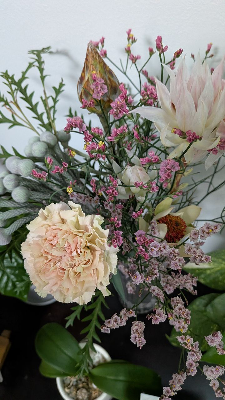 ボリュームは、もうちょっとかな~と思いました。 でも‥透明感のあるセルリアのピンクとカーネーションのピンクがリンクしていて素敵です👏