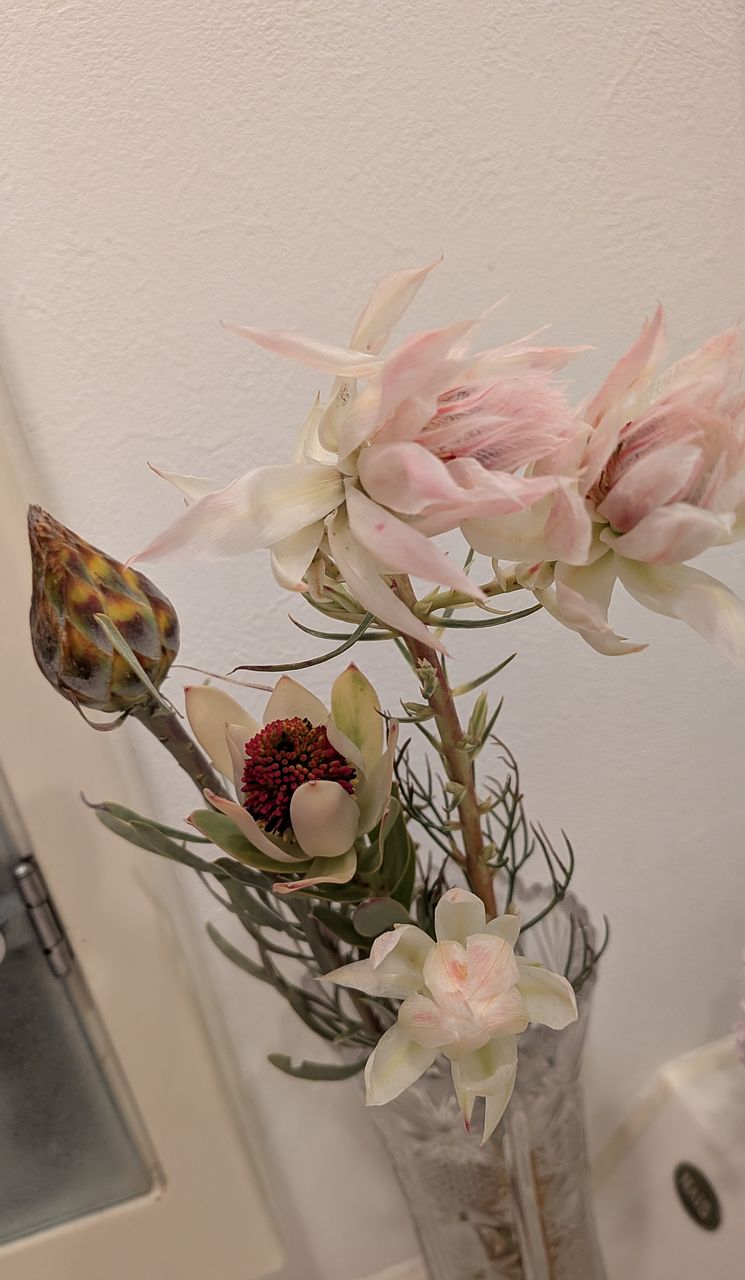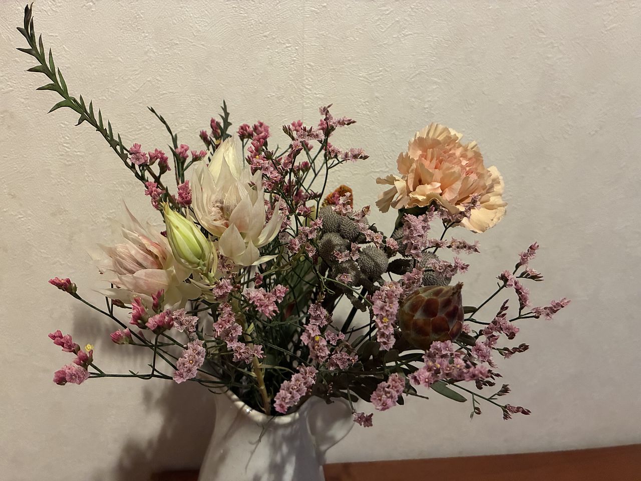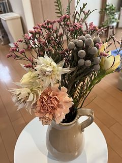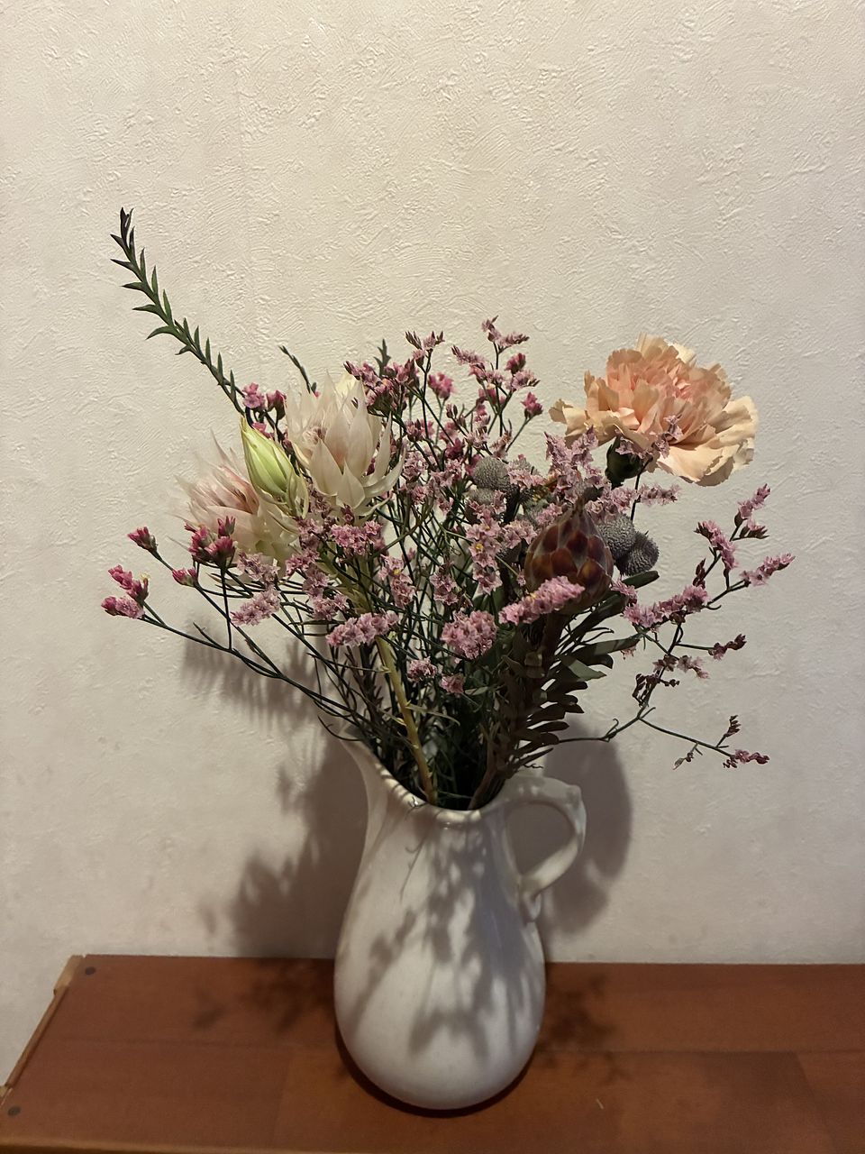 素敵な素敵なスワッグでした✨💓 前回購入した南アフリカからのお花の入ったスワッグも素敵なドライフラワーに変身できたので、今回も3日くらい生花を楽しんでから、ドライフラワーにしようと思います。 かわいい花瓶も購入できて、次回は何にしようかな…。と楽しみです。 いつも素敵な花束をありがとうございます。