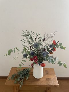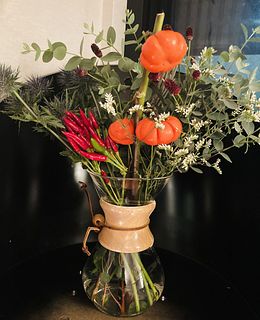 初めて注文しました。なかなか近くのお花屋さんでは手に入りにくい花材の組み合わせが嬉しい!水揚げをしたあと、毎日前に持ってくるお花を変えてハロウィンを楽しんでます。