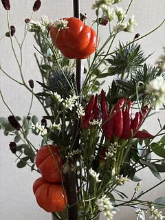 カボチャみたいなお花が可愛くて買いましたが、メインだと思ってたカボチャが2つしかついておらず、しかも1つは色がイマイチ… ハロウィンの感じが欲しくて買ったのに、期待外れでした。 確かに全体のボリュームは写真の通りにはなりますが、メインだと思っていたものが小さかったのがとても残念です。