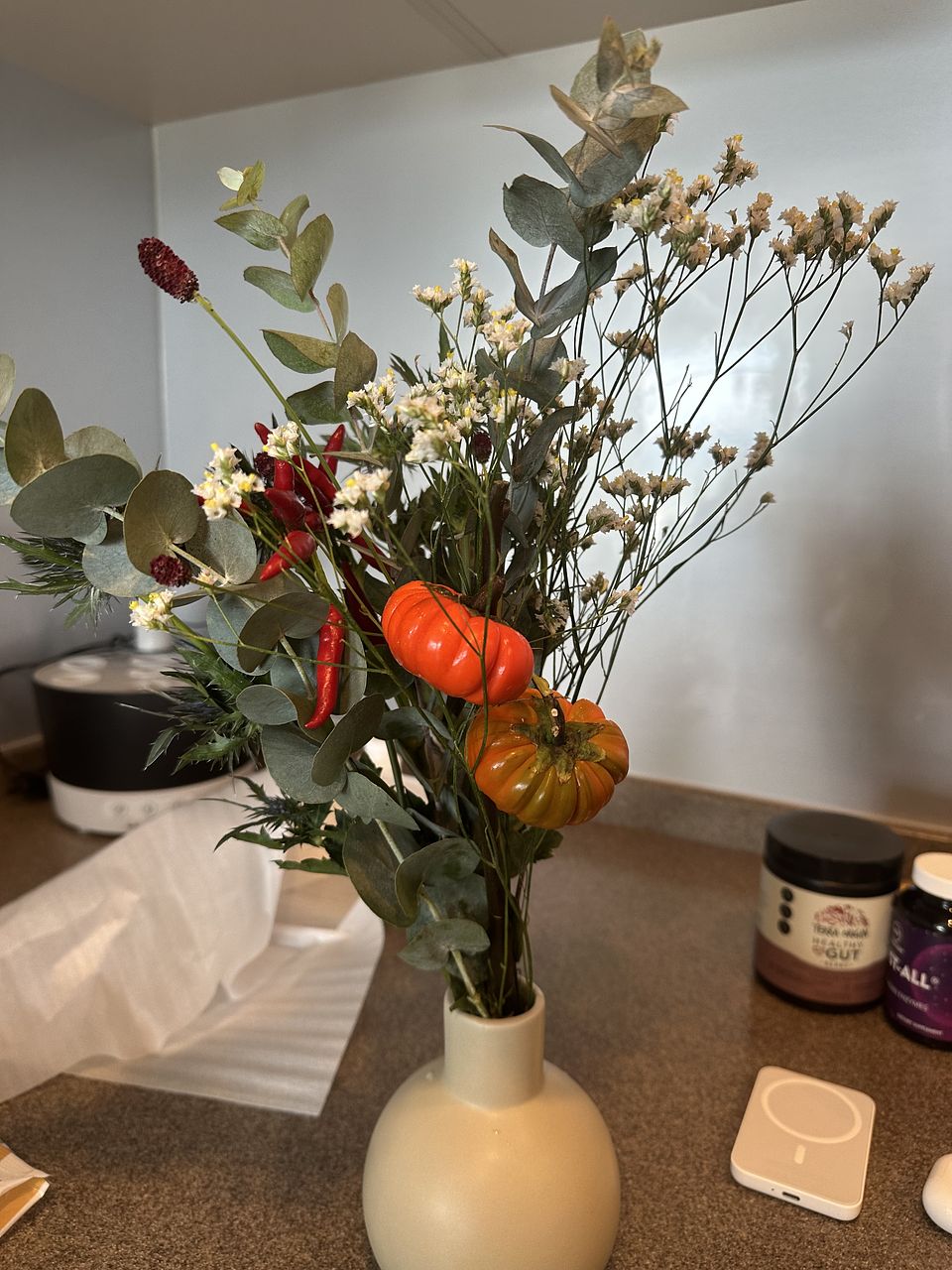 一足早いハロウィン🎃でした。 ユーカリの先端が少し枯れていたけど 飾れは、気にならないかな〜って感じです。 ありがとうございました。