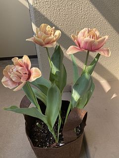 無事に綺麗に咲きました🌷大輪の花が咲いてびっくり。色合いが絶妙でかわいかった☺️