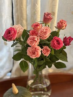 ピンク色の様々なバラまたはスプレーバラを贅沢に、たっぷり9〜10本をセレクト🎀