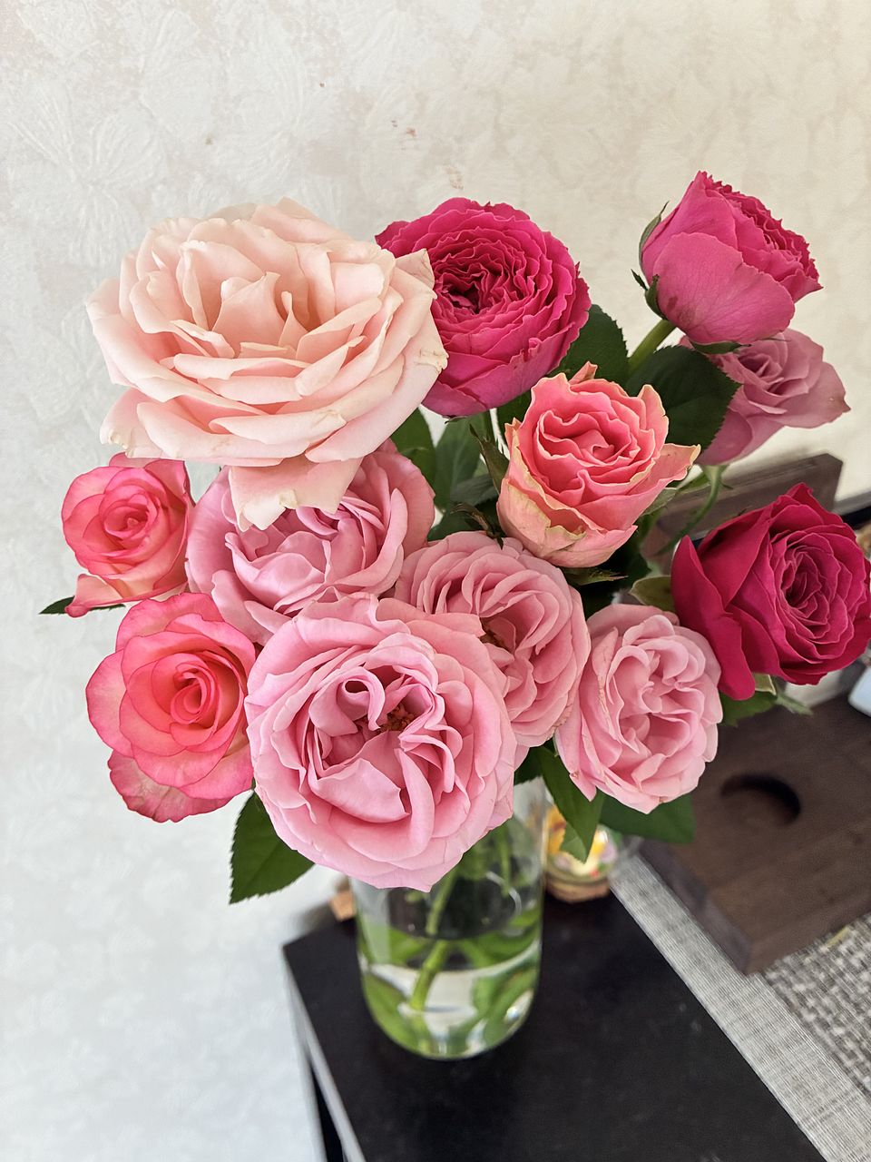 様々なピンク色のバラで心が癒されます❤️ まだまだ蒸し暑さは有りますが良い状態で届いたと感じました。