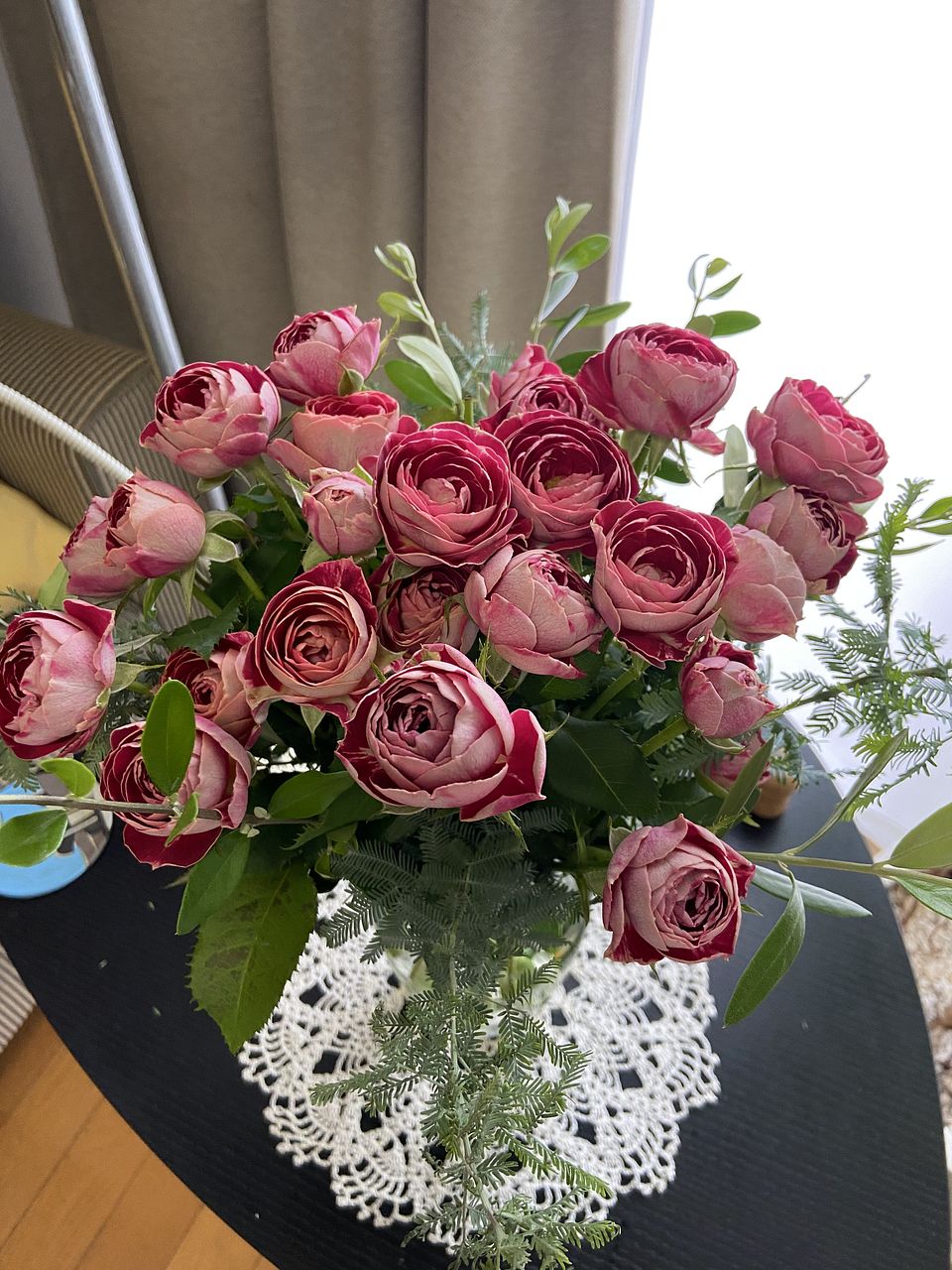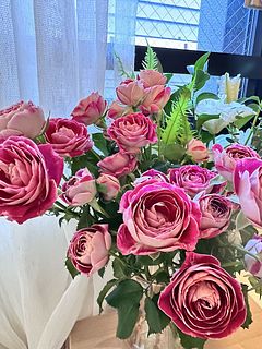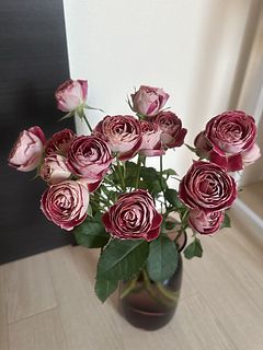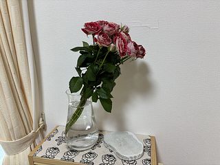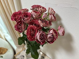 ボリュームもあってとっても可愛いバラでした!気分が上がります。家にあったグリーンと飾りました。すごく素敵!って思ったんですが、4日で萎れてしまいました