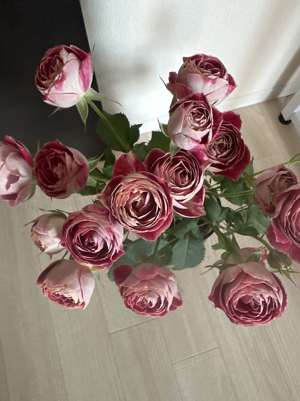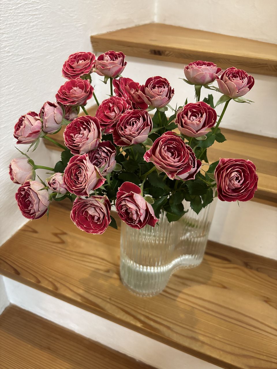 何回もリピートしてしまう、とても魅力的なバラです🌹よくお水を吸いすが、暑い時期でも1日1回お水を替えると、他よりも長持ちすると思います😊