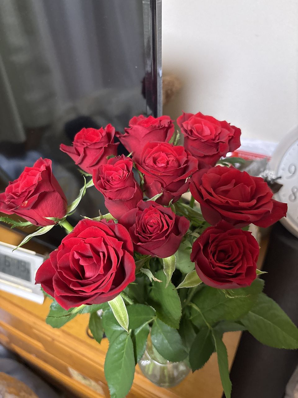久しぶりにネットでお花を注文しました クール便だったので、不在だとちょっと不便かな、とは思いましたが、お花が元気だったので、満足です🌹