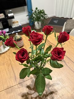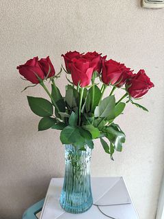 1本は初めから折れていて、届いた翌日には2本が萎びてしまった。もちろん届いてすぐに水揚げはしたが、10本のうち3本がダメなのはちょっと納得がいかない。薔薇の色は思っていたとおりの真紅でとてもキレイなだけに残念だった。