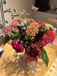 秋色のケイトウをぎゅっと束ねたブーケ🍂✨