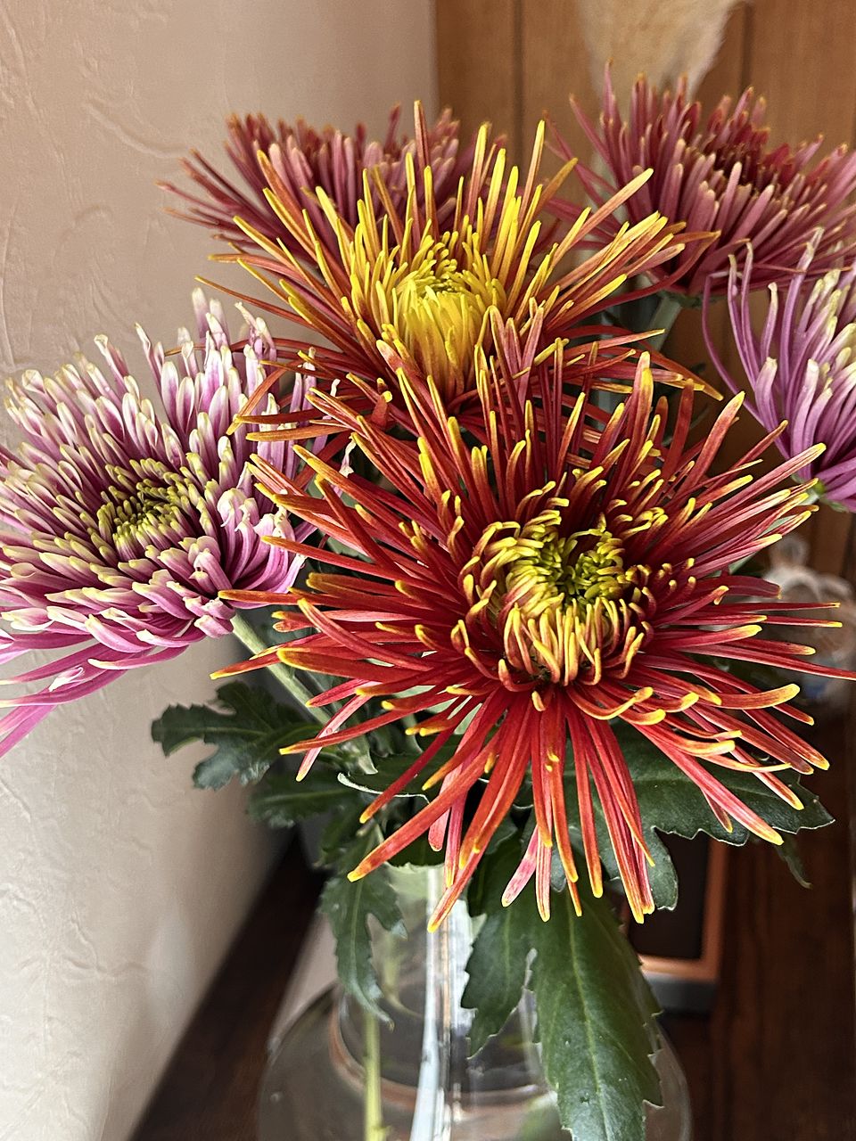 丁寧にネットが掛けられており黄色いマムはもう開こうとしていたらしく、引き抜くのに少し力が要り若干ビビりましたが無事ネットが外れると本当に花火が開くようにパッと😍