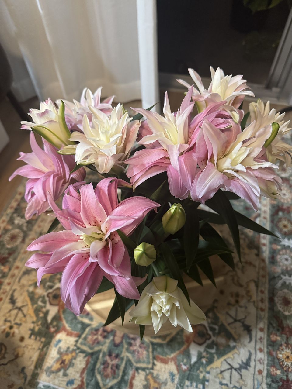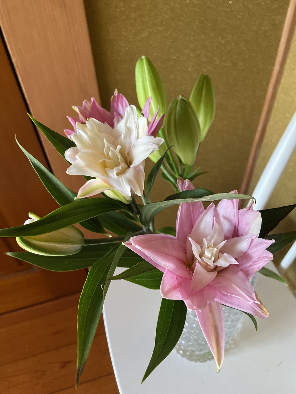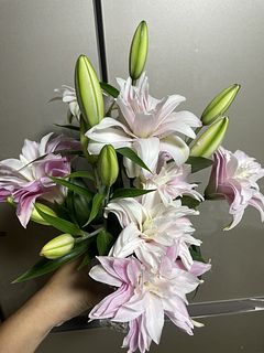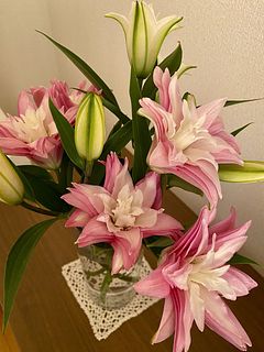 気になっていたもののイメージがわかず躊躇していましたが、大当たりでした! 八重咲きってとってもエレガント!百合の香りもほんのりして癒されます。本数が少なめかなーと思いましたが蕾が沢山付いていてボリューム満点です! 長持ちするようお世話を頑張ります💪