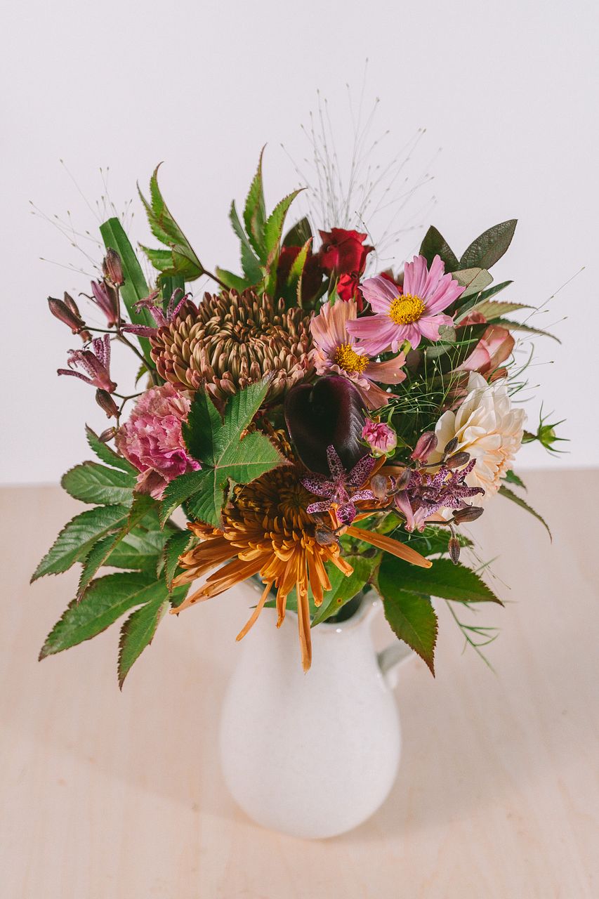 スパイラルに組まれていて葉の処理もしてあるのでそのまま飾って楽しめます。たっぷり入っているので華やかです。内容は毎回おまかせです、お楽しみに!