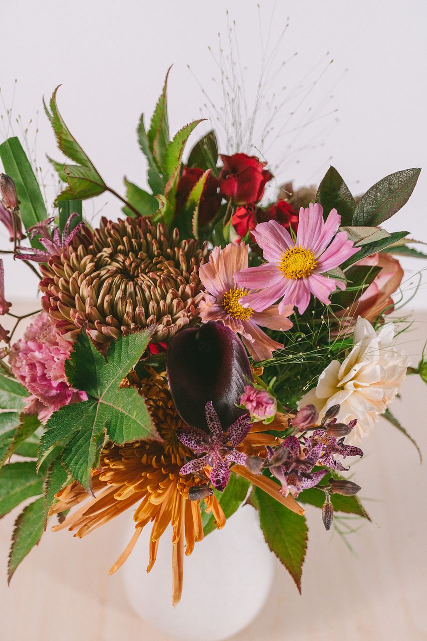 フローリストいちおしのローズやホワイトコスモス、旬の草花など季節感あふれる花々を束ねた秋のブーケ💐
