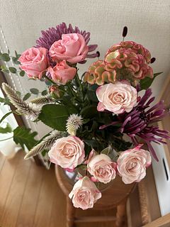 ふんわりとした空気感のある花合わせが、お部屋をやさしく彩ります。
