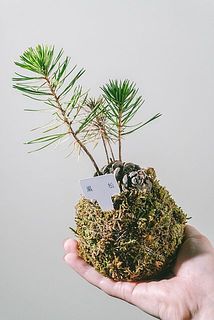 ころんとしたフォルムの苔玉と松ぼっくりの組み合わせは、素朴ながらも存在感があり、インテリアに自然のぬくもりを添えてくれます。