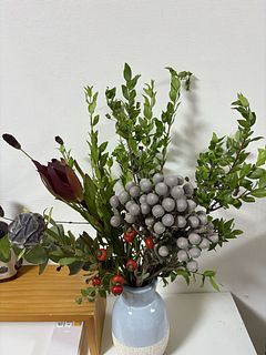 ボリュームが期待以上で用意していたフラワーベース➕短い子達だけの小さなブーケも作りました。 ユーカリの香りがとっても良いいです。しばらく楽しんだらドライにもチャレンジしてみます。