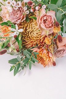 深みのある色合いに、シックなグリーンや実ものが添えられ、秋の匂いを感じるブーケ💐🍁